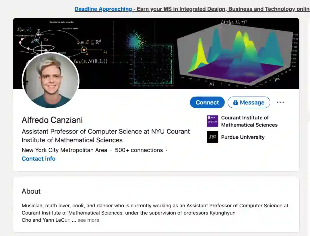 Alfredo Canziani师从Kyunghyun Cho和Yann LeCun教授,是纽约大学Courant数学科学研究所下的计算机科学研究助理教授和深度学习研究科学家。