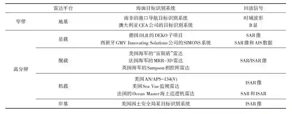 雷达海面目标识别的工程应用是国内外学者一直致力解决的问题。国外在此方面的研究起步早,已有多型雷达具备目标识别能力(表3)。