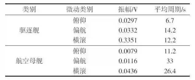 在窄带雷达探测海面运动舰船时,由于螺旋桨、发动机等部件的推进会使得舰船在横滚、俯仰和偏航方向上存在微动,而这种微动与舰船类型和海情相关,可用于目标分类与识别。表2为5级海情下航空母舰和驱逐舰的三维微动参数。基于微动舰船的雷达回波特性分析,可通过时频变换提取相应的微动周期,并与参考周期对比获取海面目标的类型。一般假设,舰船目标的俯仰和偏航的微动相对于横滚的微动非常微弱。