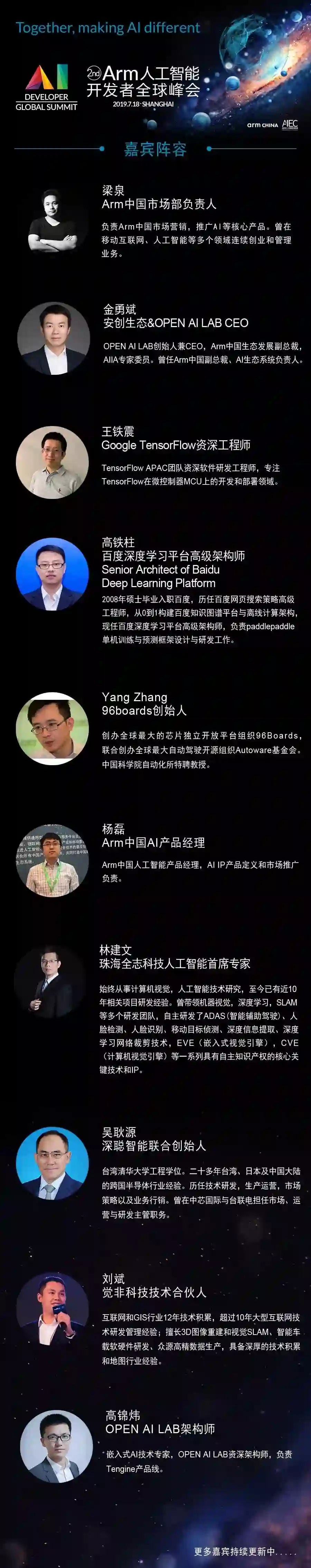 7 月 18 日,上海中星铂尔曼酒店,2019 年第二届 Arm 人工智能开发者全球峰会,各路大咖云集,还等什么?赶紧来加入这场空前绝后的盛会!