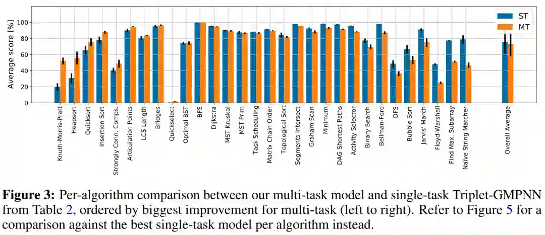 具体地,该研究利用 CLRS 基准从实证上表明,就像在感知领域取得的成功一样,通用算法学习器可以通过整合知识来构建。也就是说,只要我们能学会在单任务模式下很好地执行算法,就有可能在多任务模式下有效地学习算法。