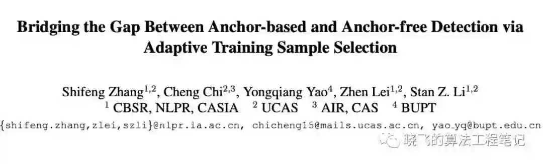 指出anchor-free和anchor-based方法的根本差异主要来源于正负样本的选择