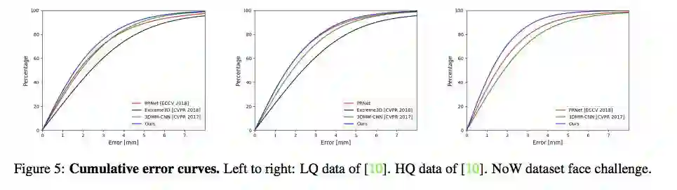 研究者对 RingNet 进行了定量和定性评估,并与已有的公开方法(PRNet (ECCV 2018 [9])、Extreme3D (CVPR 2018 [35])、3DMM-CNN (CVPR 2017 [34]))进行了对比