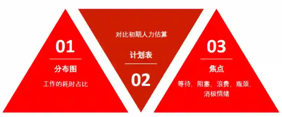 无论是传统的瀑布,还是现在流行的敏捷,都会有工作进度排期。我们可以把最开始的计划(就是给测试排任务的时间表)和在执行测试整个过程中的时间表进行对比。
