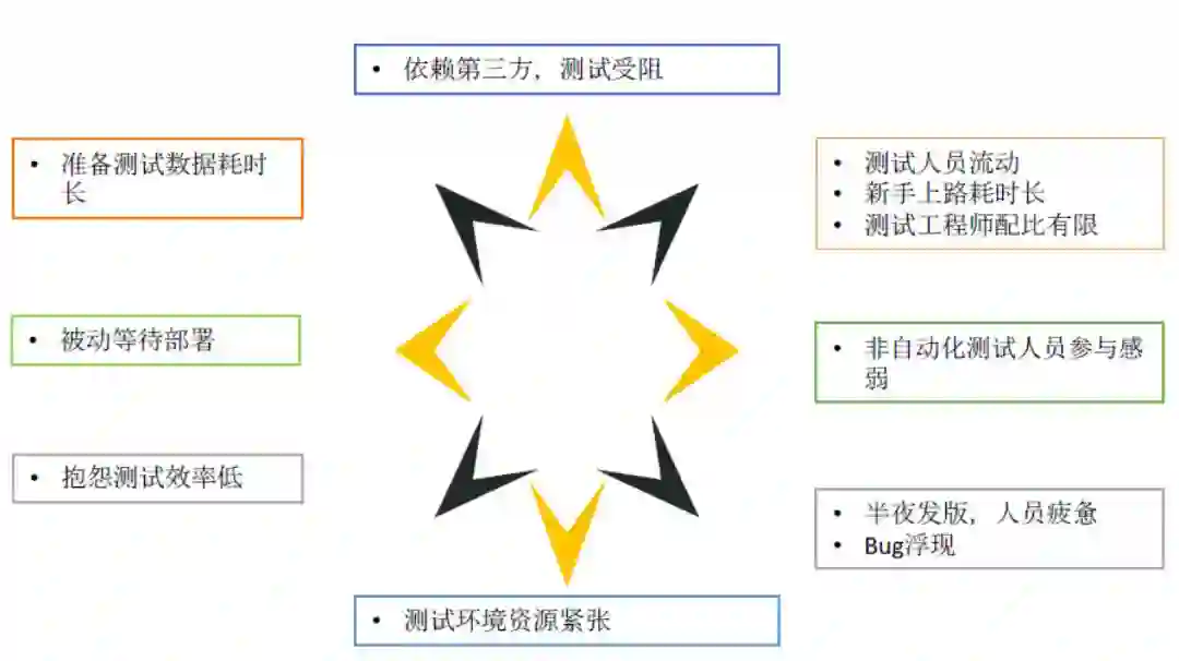 因为,我们一直在等,等测试环境,等运维部署好测试环境,等开发说代码全部码好(这个时候提测可能延期)。这种被动的等待使得测试团队的效率和士气受损。