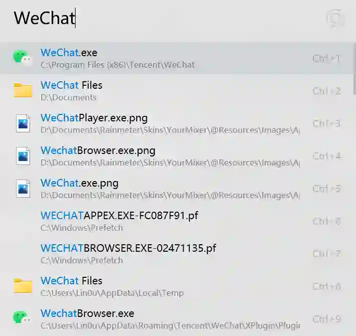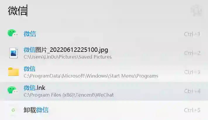 虽然在 Windows 11 上,按下 Win,直接输入想要搜索的内容,即可进行搜索,但是仍然存在一些奇妙的问题,例如:无论是 Weixin,还是 WeChat 都不能快速打开微信。Listary 可以帮我们解决这个「痒点」。