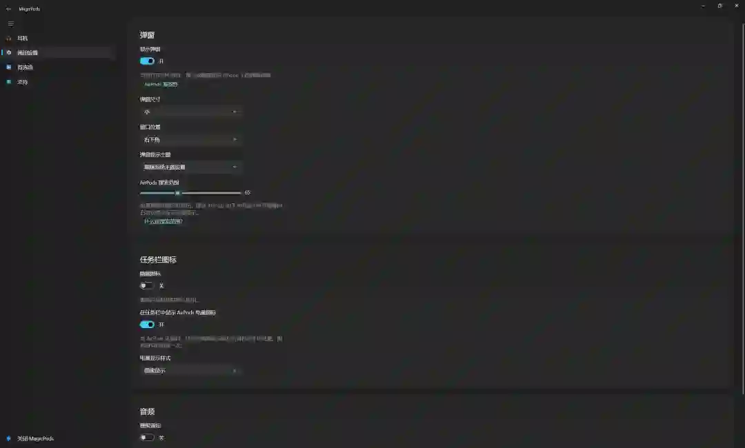 MagicPods 还可以在任务栏中显示耳机电量,或者利用讲述人进行通知播报。MagicPods 不仅适用于 AirPods,一部分 Beats 耳机也可以使用 MagicPods,你可以访问