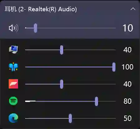 在不同应用间切换,或者同时使用多个应用程序时,我们很可能要频繁的调整系统音量,或者打开音量合成器,分别调节各个应用程序的音量。EarTrumpet 则可以大幅简化这一流程。