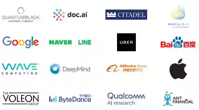 介绍赞助商也成了会议报道的惯例,毕竟是一票难求、人才济济的会议。今年的赞助商如果说有变化,那么最大的变化就是——公司覆盖的行业类型增多了。可以发现,除了谷歌、微软、亚马逊、Facebook和BAT等传统的AI巨头,越来越多的传统企业,比如投行、银行,以及创业企业出现在了赞助商名单里,这说明AI的影响确实扩大了。