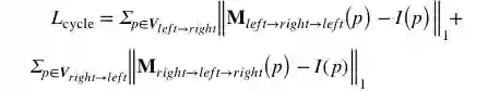 在照度损失的基础上,受cycle GAN中循环损失启发,本文设计了循环一致性损失,以自封闭的形式进一步对双目图像间的潜在几何关系进行正则。循环一致性损失可以理解为,左图(或右图)经过两次注意力图的映射后,应当能够得到左图(或右图)本身。