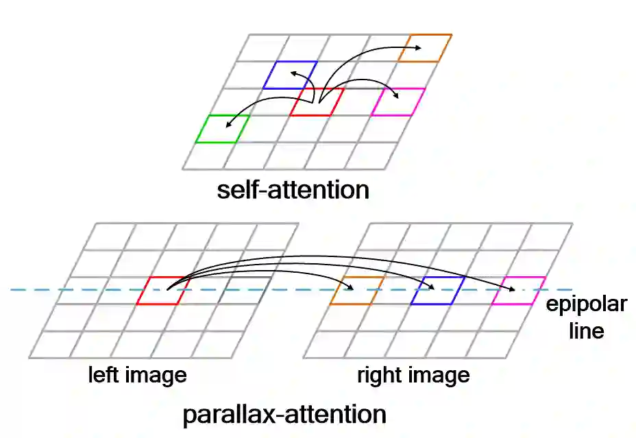本文将双目视觉中的对极几何(EPI)关系引入到注意力机制中,计算双目图像不同视差位置间的相似性,并基于这一相似性测度实现对左右图特征的融合。