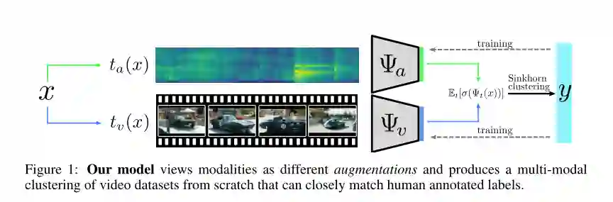 摘要:深度学习当前成功很大一部分在于数据的有效性--更确切地说,是标记数据。然而,使用人工注释标记数据集的成本仍然很高,尤其是对于视频而言。虽然在图像领域中,最近的方法已允许在无监督的情况下为未标记的数据集生成有意义的(伪)标签,但视频领域缺少这种发展,因为学习特征表示是当前关注的领域。在这项工作中,我们(a)展示了视频数据集的无监督标记并非来自免费的特征编码器,并且(b)提出了一种新颖的聚类方法,该方法可以利用音频和视觉模态之间的自然对应关系,对视频数据集进行伪标记而无需任何人工注释。广泛的分析表明,生成的聚类与真实的人类标签具有高度的语义重叠。我们还将展示有关普通视频数据集动力学,动力学声音,VGG声音和AVE2的无监督标记的第一个基准测试结果。