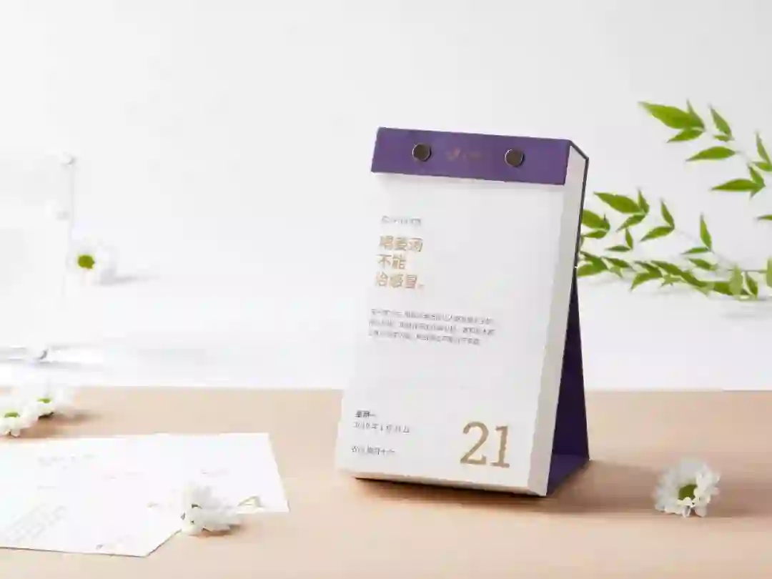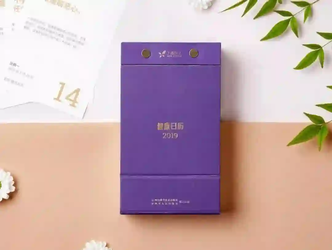 《健康日历2019》延续了以往的简约风格,采用了立式撕页形式,尺寸则大了一圈。