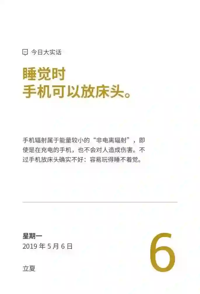 “晚上睡觉时记得关手机、Wi-Fi,有辐射!”
