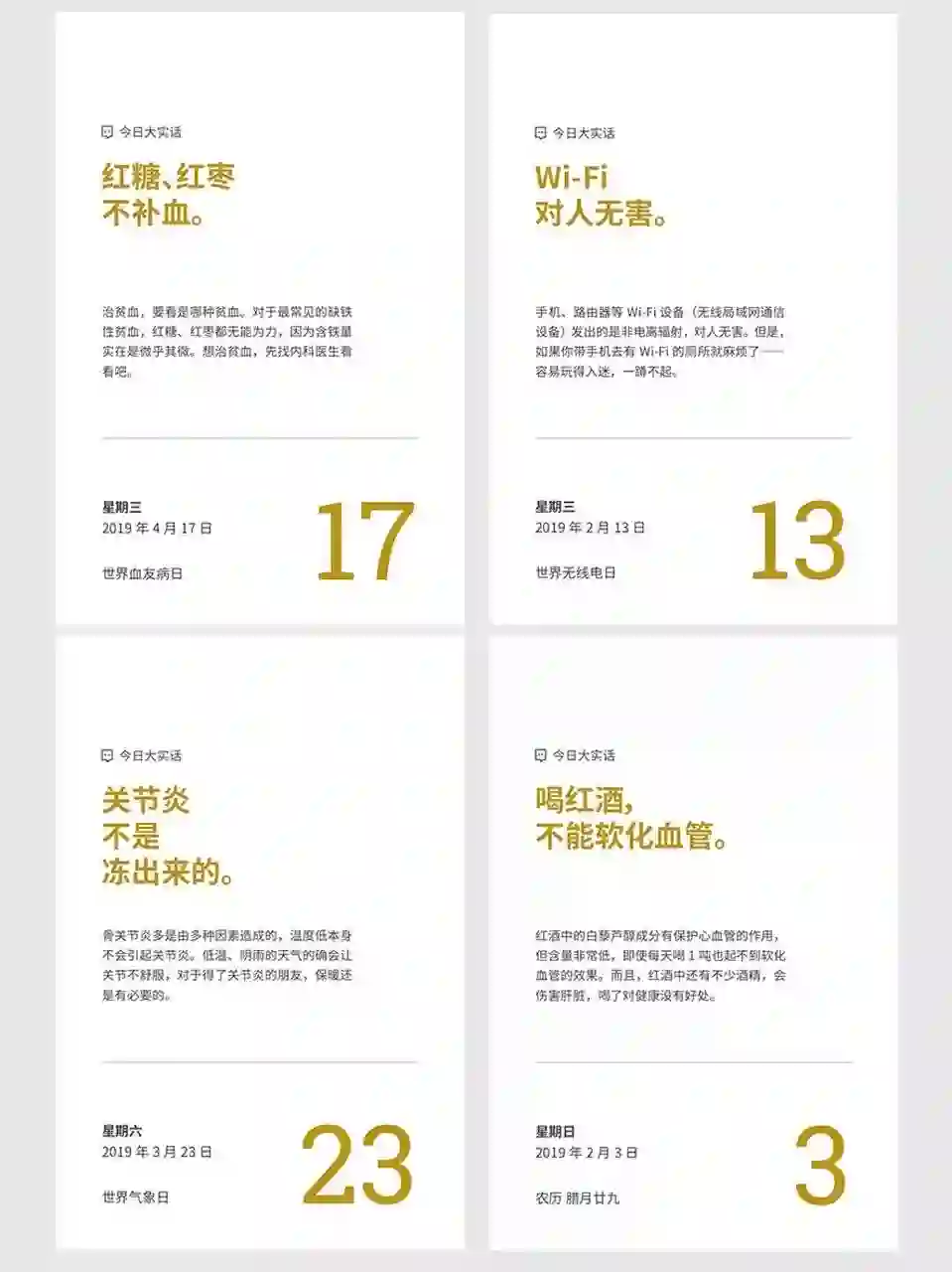 《健康日历 2019》的365句健康常识,与2018 年的几乎不重复,去年买过的人,今年可以继续收藏。