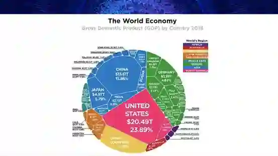 上图是世界银行的最新数据,蓝色代表亚洲,红色代表北美,绿色代表欧洲。