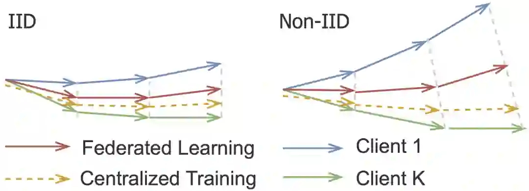 图 2 展示了用独立同分布和非独立同分布数据在联邦学习训练中产生的模型发散的现象