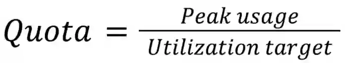 将第三高峰值定义为集群的峰值 CPU 利用率。在最后一步中,从集群的 42 个数据点(14 天 *3 个数据点 / 天)中提取峰值 CPU 利用率。峰值 CPU 利用率被定义为第三高的数据点。通过选择第三高的数据点,我们避免了对异常值的过度索引。在确定了每个集群的峰值 CPU 利用率后,我们将配额计算为: