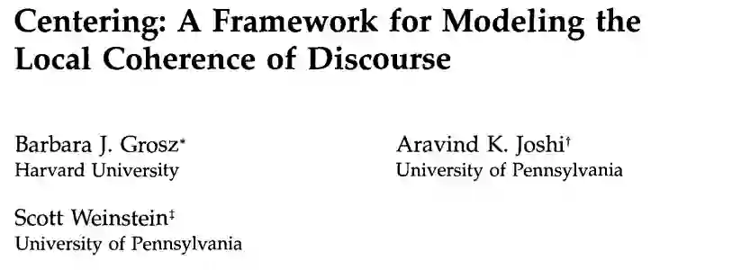 论文 1:Centering: A Framework for Modeling the Local Coherence of Discourse