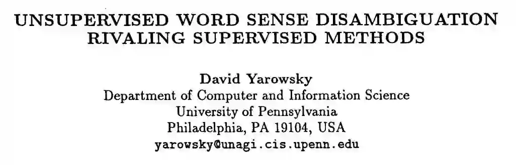论文 2:Unsupervised Word Sense Disambiguation Rivaling Supervised Methods