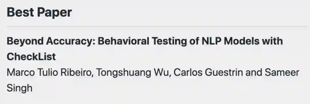 ACL 2020 最佳论文奖项由来自微软研究院、华盛顿大学、加州大学欧文分校的研究人员摘得,该研究提出了一种与任务无关的 NLP 模型测试方法。