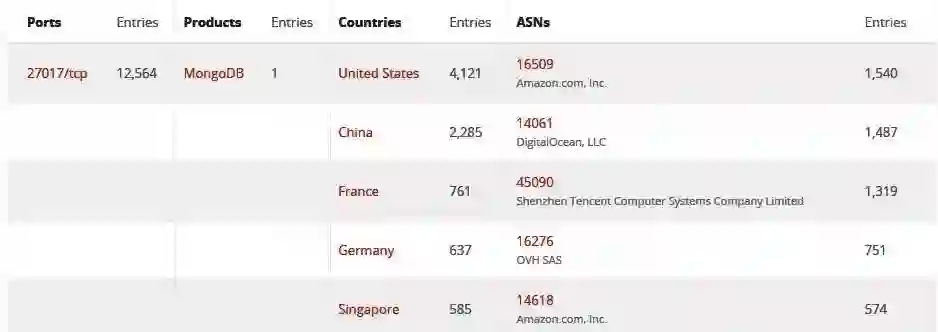 研究人员使用 BinaryEdge 发现了被 Unistellar 删除的 12564 个未受保护的 MongoDB 数据库,而在 Shodan 中只发现了 7656 个数据库,这可能是因为查询被阻塞。
