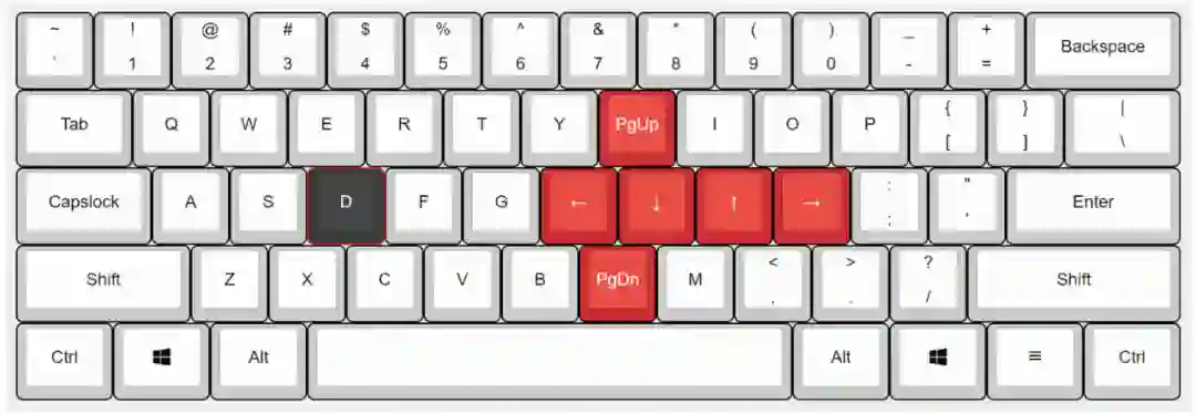 当仅想要输出 D 时快速敲击即可,而按住 D 不放则激活导航功能,变化后的键位如下图所示。