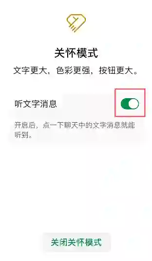 据“微信派”公众号消息,微信现在支持“听文字消息”了。开启后,点一下聊天中的文字消息就能听到。无论你是安卓手机,还是苹果手机,更新到最新版本就能用。具体开启方法为:打开微信,点击“我”,选择“设置”,找到“关怀模式”,按“开启”。再调节“听文字消息”按钮到开启状态。接下来,当再打开任何一个微信聊天,点一下文字,就能读出来。