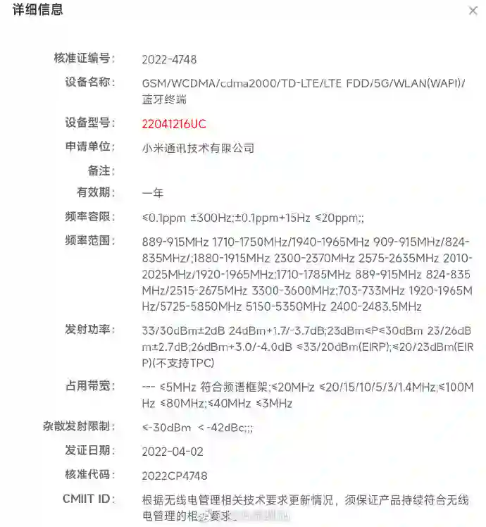 近日小米两款型号为 22041216UC 和 22041216C 的小米新机获得核准公示,据知情人士爆料这两款手机就是 Redmi Note 12 系列。据 @数码闲聊站 表示,Redmi Note12 系列将是高辨识度、高性能、高续航中端机,可能搭载天玑 1300 芯片,而不是最新的天玑 8100。据了解,此前卢伟冰曾表示,Note 系列开启一年两代的迭代策略,主要是满足越来越多元化的用户需求。分别定位是“性能小旗舰”和“体验小旗舰”。