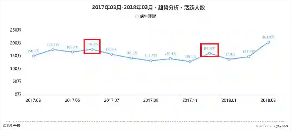 2017年3月-2018年3月蜗牛睡眠APP月活趋势