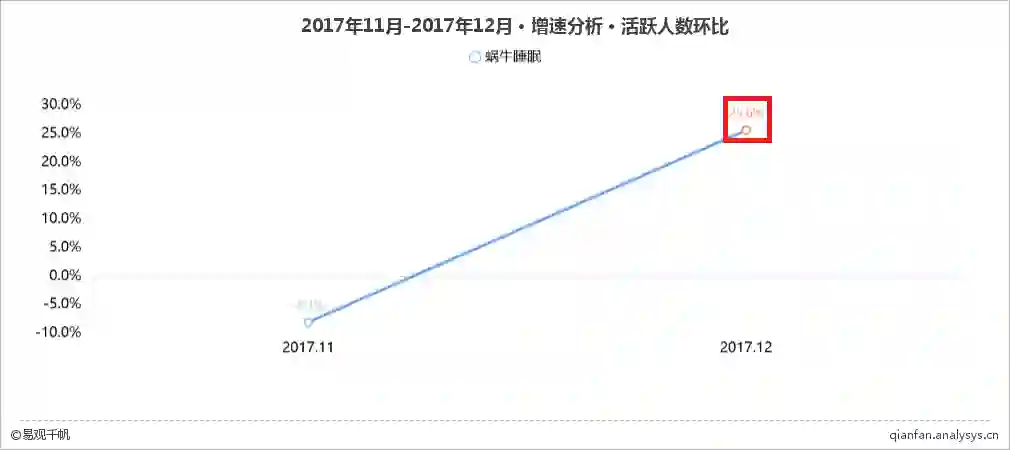 2017年11月-12月蜗牛睡眠APP活跃人数环比增速分析