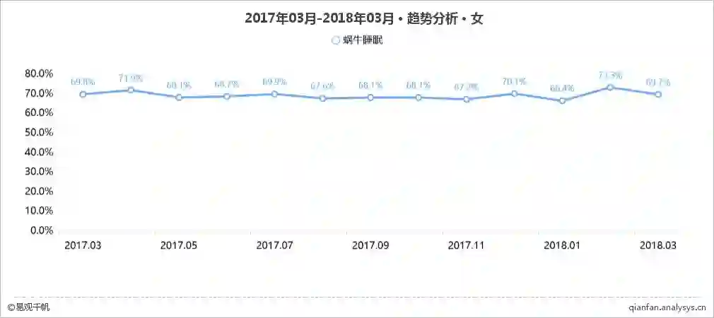 2017年3月-2018年3月蜗牛睡眠APP女性用户趋势