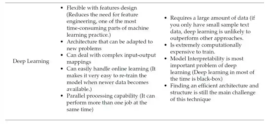 1. 特征提取:一般来说,文本和文档都是非结构化数据集。然而,当使用数学建模作为分类器的一部分时,这些非结构化文本序列必须转换到结构化的特征空间。首先,需要清除数据,以省略不必要的字符和单词。在数据被清除之后,可以使用形式化的特征提取方法。常用的特征提取技术有词频逆文档频率(TF- idf)、词频、Word2Vec和用于单词表示的全局向量(GloVe)。在第2节中,我们将这些方法分为单词嵌入技术和加权单词技术,并讨论了技术实现细节。