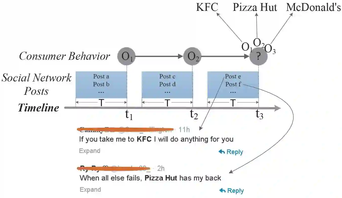 同时我们还发现,用户的消费行为会受到社交媒体的影响。消费数据和社交媒体上相关信息的强关联性表明了很多用户的消费受到社交媒体的刺激,而用户对刺激的反应程度正是由心理学中的消费冲动性格来刻画的。因此,我们设立了基于消费冲动性格的推荐模型:1)计算一段时间内社交媒体上的信息和商品的相似性,即该商品在社交媒体上对用户的刺激程度。2)把每个用户的消费冲动程度设计为一个隐变量。3)使用图模型对用户消费行为进行建模。当用户的冲动状态处于较高的值时,用户更容易被社交媒体上的信息所刺激,选择一个刺激信息较强的物品去消费,而忽略掉自己本身对这些物品的喜爱程度;而当用户的冲动状态处于较低的值时,用户处于较理性的状态,此时用户更易于根据自身的喜好选择物品。