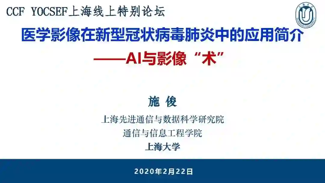 图图今天为大家带来上海大学施俊教授在2020年2月22日,CCF YOCSEF上海线上特别论坛中的特邀讲者发言:医学影像在新型冠状病毒肺炎中的应用简介——AI与影像“术”,希望可以为各位图粉解答AI在基于CT影像的新冠肺炎诊断中的最新应用。