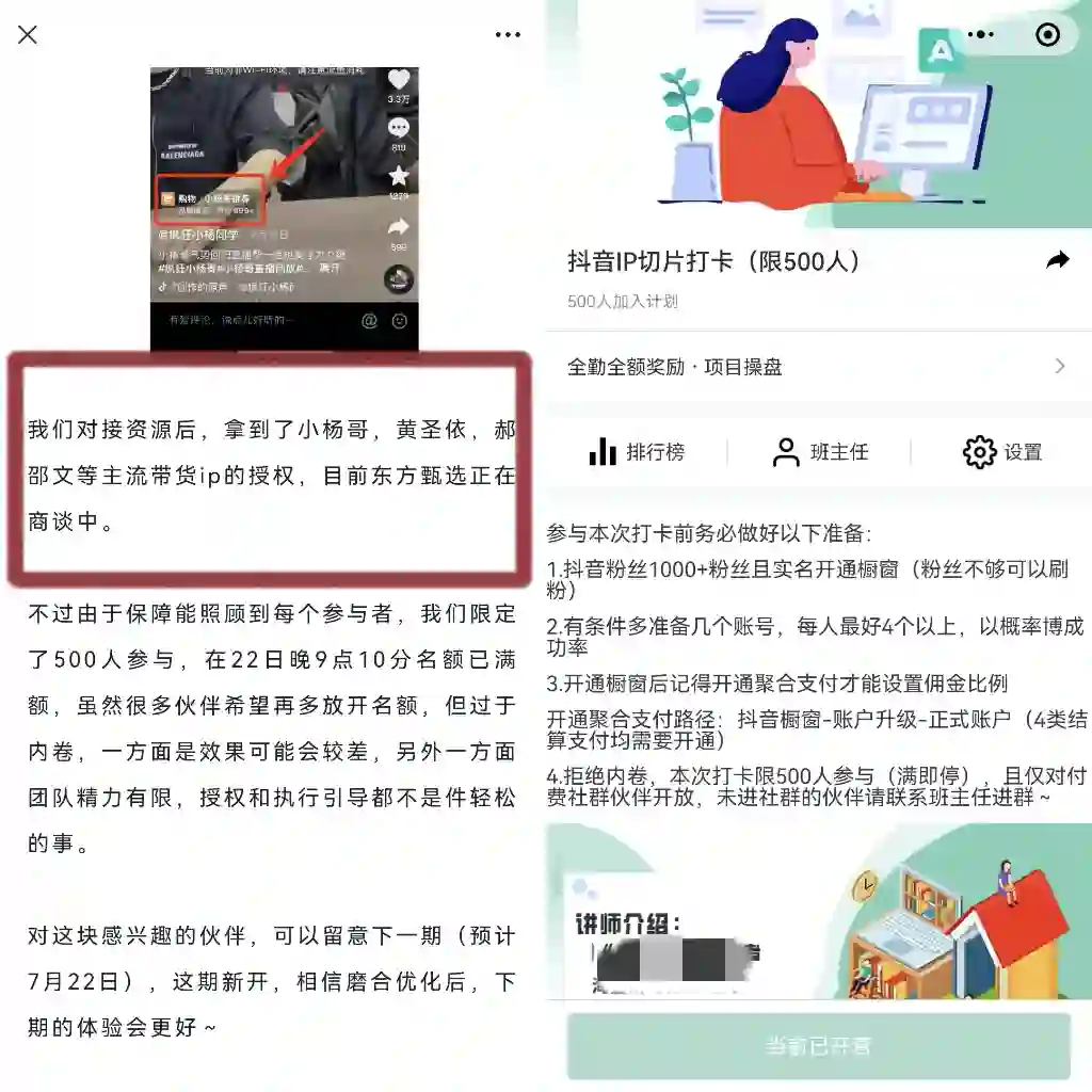 除了售卖教程的博主,另一部分人则用直播切片号的教程为自己引流,比如通过各个平台发布直播切片号的信息,将用户引流到自己的微信公众号或者知识星球等,或者开办各种会员打卡群、训练营等,将流量转化为自己的私域流量,再进行进一步收割。