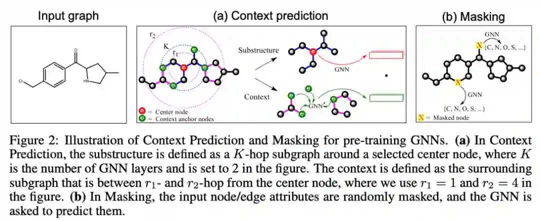 对于用预训练模型在节点级别(比如节点分类)和图级别(比如图分类)捕捉结构和领域知识,作者们都在论文中提出了有价值的见解,那就是,对于在节点级别学习结构属性来说,内容预测任务的重点是在负采样的帮助下根据嵌入预测一个节点周边的节点(仿佛很像word2vec的训练对不对),其中通过掩蔽的方式,随机遮住一些节点/边的属性,然后让网络预测它们。