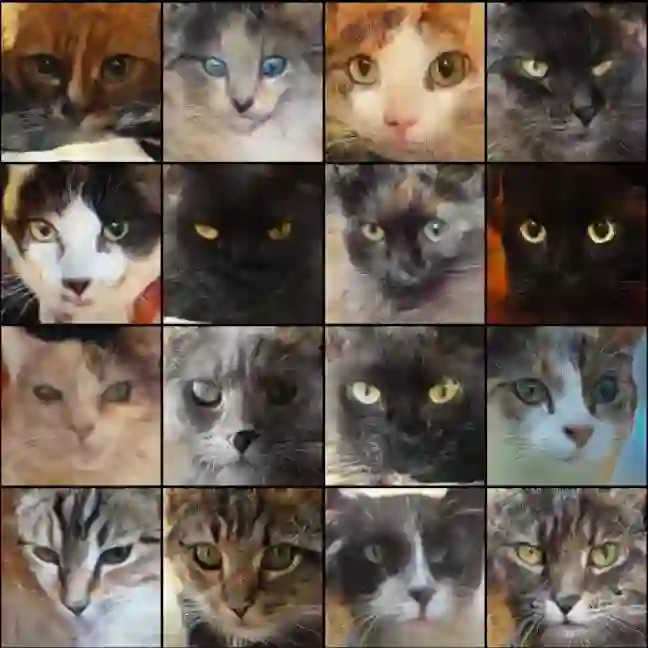 在LSGAN中引入相对判别器后生成的128×128猫图,FID值仅为15.85