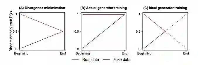 在标准生成对抗网络(SGAN)中,判别器负责估计输入数据是真实数据的概率,根据这个数值,我们再训练生成器以提高伪数据是真实数据的概率。但本文认为,判别器在提高“伪数据为真”的概率的同时,也应该降低“实际数据为真”的概率,原因有三: