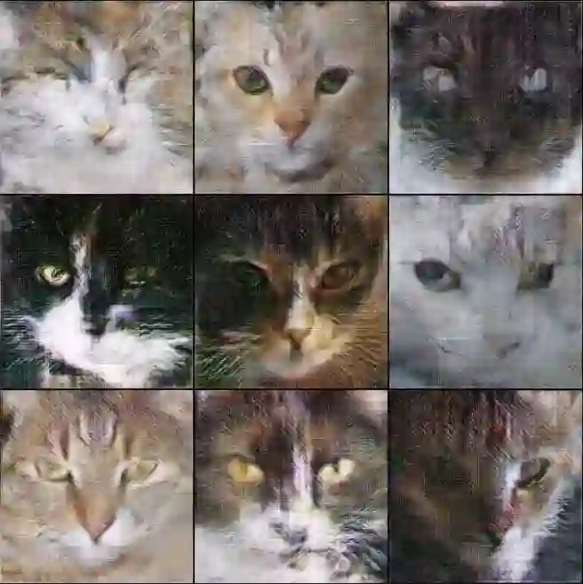 WGAN-GP生成的256×256猫图,FID>100