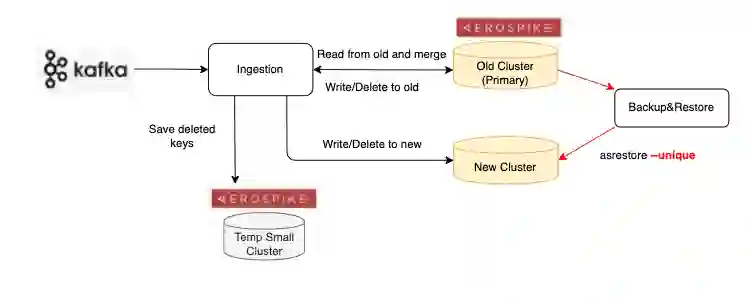 这时可以充分利用 Aerospike 在 restore 过程中 unqiue 特性:“如果 key 在 Aerospike 里已经存在那么 restore 就不再向集群中写入该条数据”, 来保证 restore 的数据不会覆盖 Ingestion 端的最新数据版本。