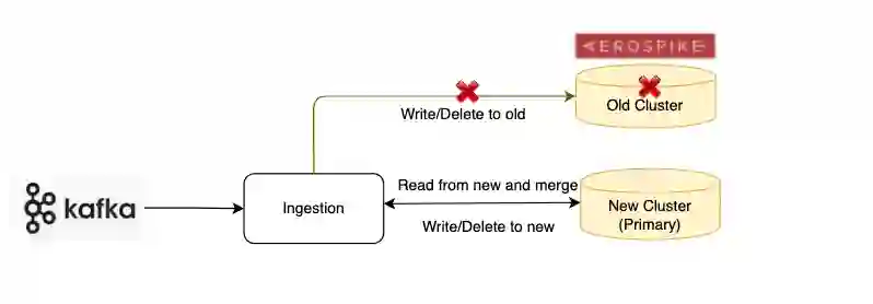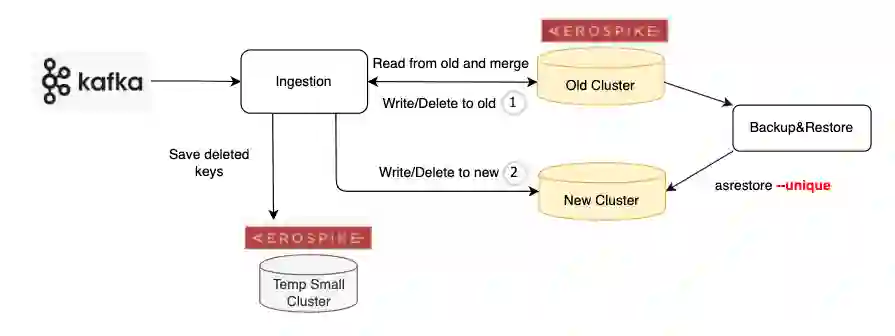 通常对于非大数据场景,非常直接的想法就是,在 backup 和 restore 数据到新集群的过程中,暂停写入(Ingestion)端数据的写入,当新集群数据 restore 结束后再打开 Ingestion 端的写入,并且直接写入到新集群,然后用新集群来服务线上即可。