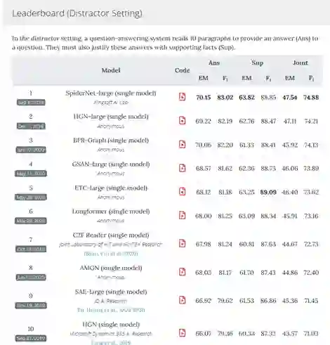 本次金山人工智能事业部的SpiderNet模型参加的是干扰项赛道(Distractor Setting),每个问题提供10个备选篇章。