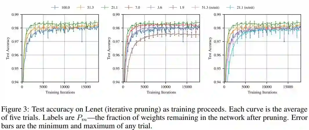 创新点:本研究提出一种 lottery ticket hypothesis:对于那些包含子网络 结构的密集、随机初始化前馈网络,当单独训练这些子网络时,通过相似的训练迭代次数能够取得与原始网络相当的测试性能。而