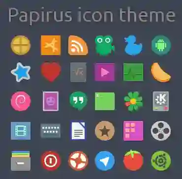 基于非开源的 Paper 主题,并有一些额外的特性(如硬编码托盘支持,kde 颜色方案支持,libreoffice 图标主题,filezilla 主题,smplayer 主题…)以及其它的修改的 SVG 图标主题。有 Papirus 、Papirus Dark、Papirus Light、ePapirus 四种风格可供选择。