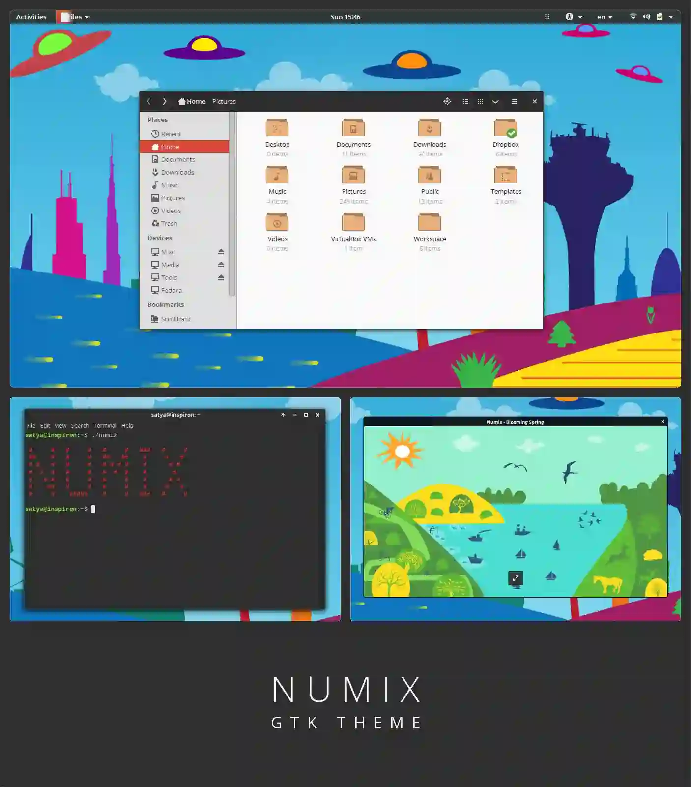 一款结合了明暗元素的现代化平面主题,支持 Gnome、Unity、XFCE 和 Openbox 。