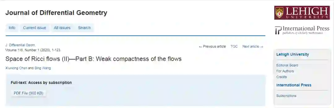 近日,中科大几何与物理研究中心创始主任陈秀雄教授与王兵教授关于高维凯勒里奇流收敛性的论文“ Space of Ricci flows (II)—Part B: Weak compactness of the flows ”于国际知名数学期刊《微分几何学杂志》(Journal of differential geometry)发表。该期刊是几何学领域的顶尖刊物,发表过多篇划时代的数学论文,如哈密尔顿关于里奇流的奠基性工作。