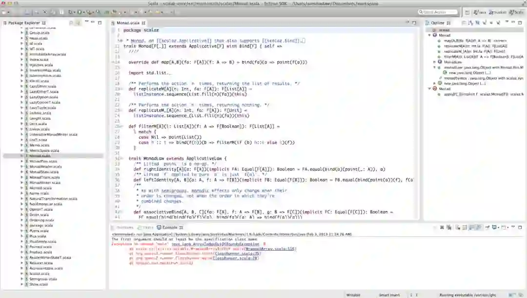 Scala IDE for Eclipse为开发纯Scala应用及Scala-Java混合应用提供了高级编辑、调试支持,可以在Scala和Java引用之间跳转。