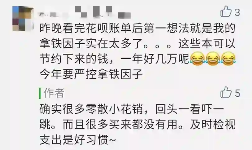 读者朋友在文章《“有楼有高潮”》后留言,说看完花呗账单发现拿铁因子太多了,一年好几万。