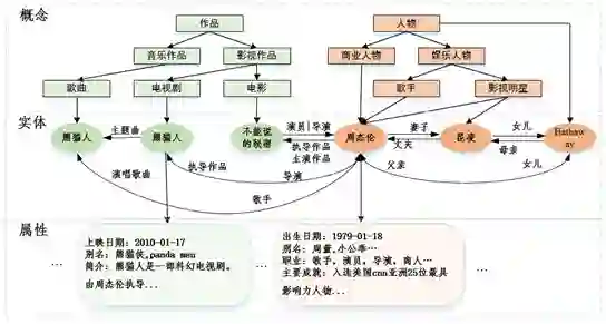 其次是定义关系和属性:定义了概念类别体系之后我们还需要为每一个类别定义关系和属性。关系用于描述不同实体间的联系,如:夫妻关系(连接两个人物实体),作品关系(连接人物和作品实体)等;属性用于描述实体的内在特征,如人物类实体的出生日期,职业等。关系和属性的定义需要受概念类别体系的约束,下层需要继承上层的关系属性,例如所有歌手类实体应该都具有人物类的关系和属性。我们采用半自动的方式生成每个概念类别体系下的关系属性。我们通过获取百科 Infobox 信息,然后将实体分类到概念类别体系下,再针对各类别下的实体关系属性进行统计分析并人工审核之后确定该概念类别的关系属性。关系属性的定义也是一个不断完善积累的过程。